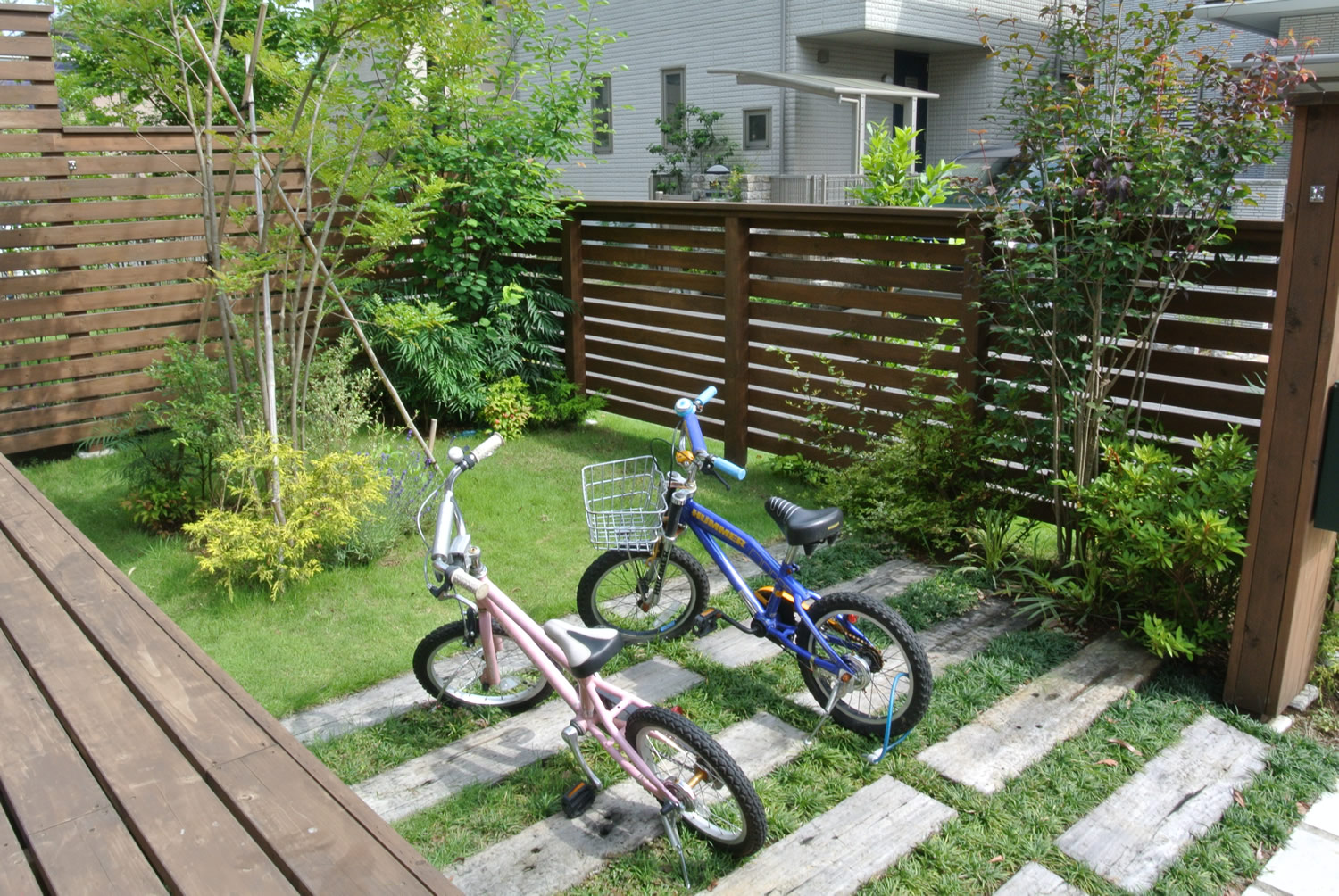 天然木のかっこいいサイクルポート 経年変化をご覧ください 自転車 屋根 自転車置き場 diy 自転車小屋